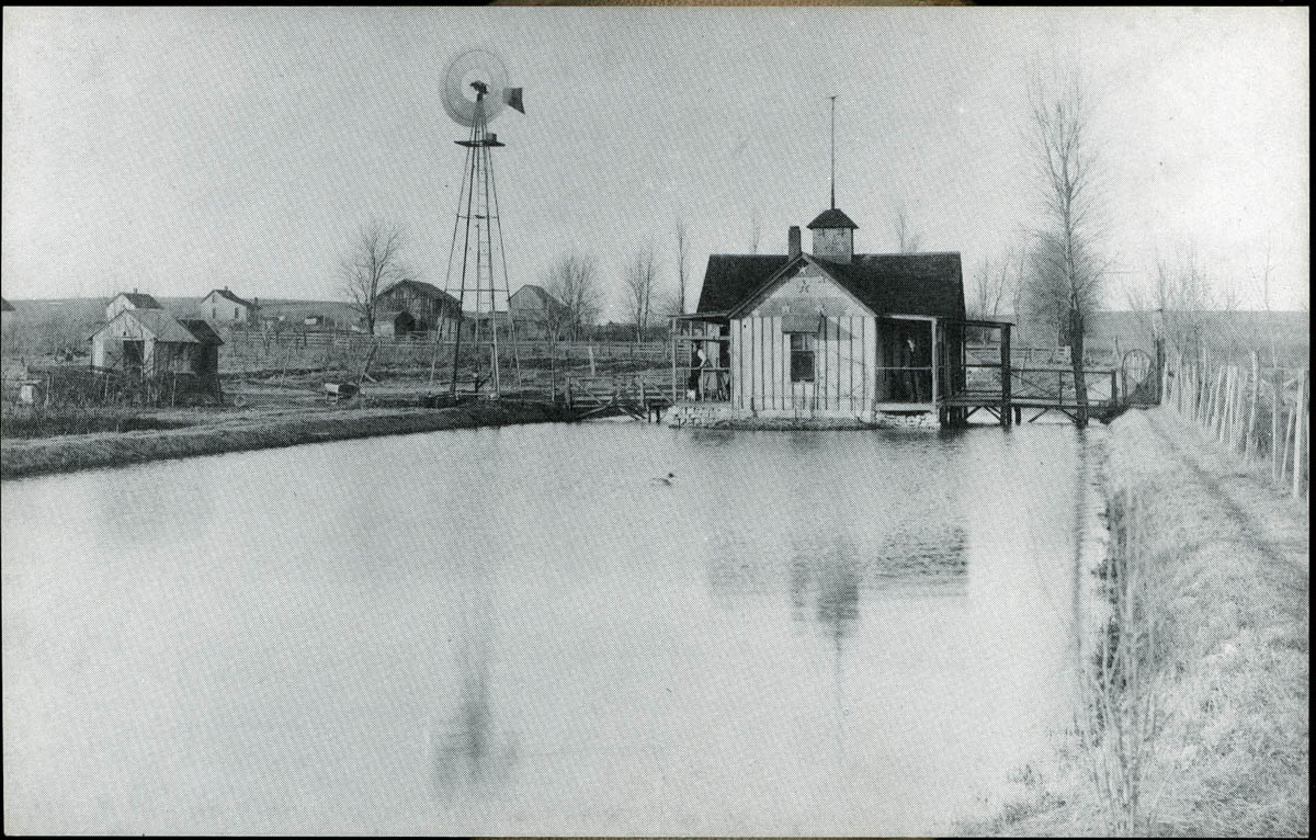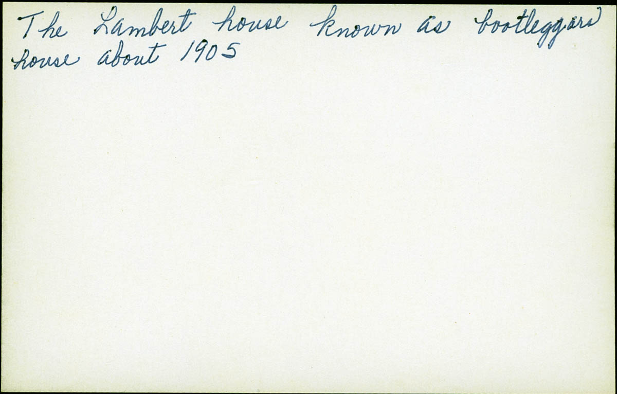 - Snapshot of a farm. Handwritten label on back says "The Lambert house known as bootleggers house about 1905"