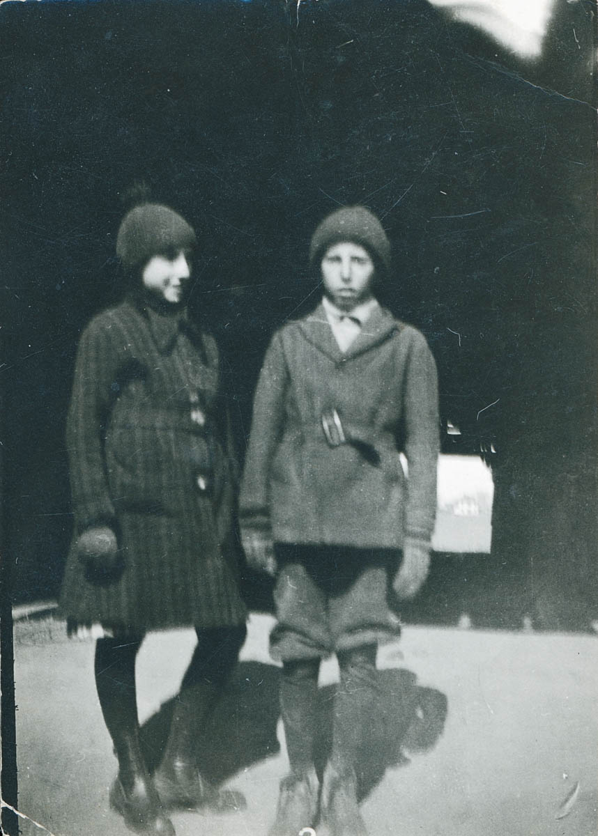 - Snapshot of two children in coats.