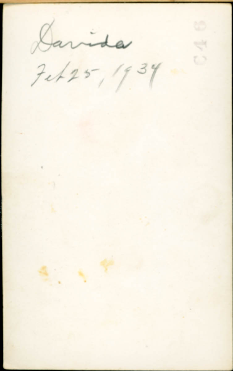 Handwritten label on back says "Davida Feb 25, 1934" - Date