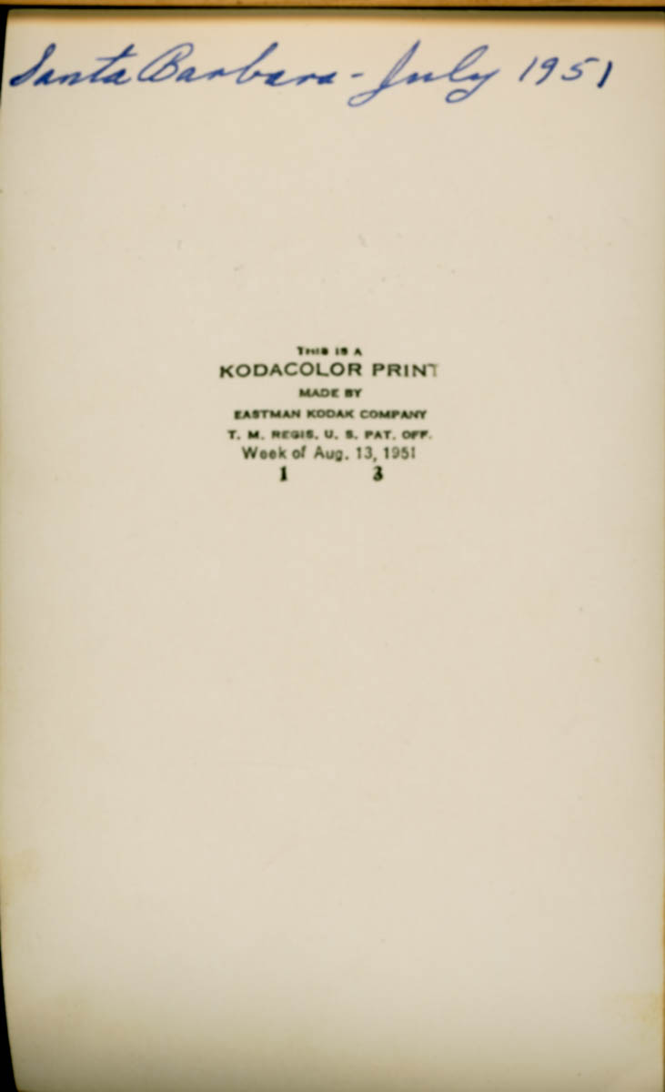 Handwritten label on back says "Santa Barbara - July 1951" - Date