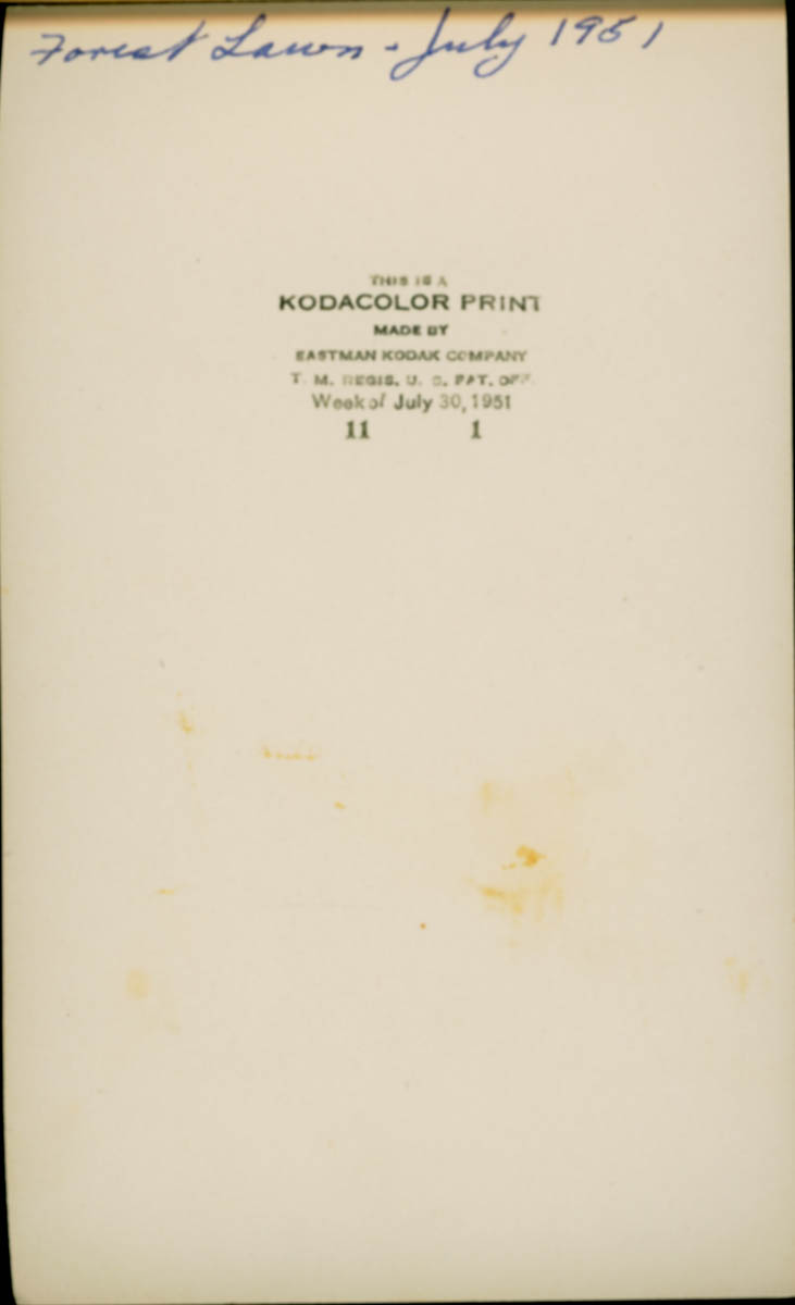 Handwritten label on back says "Forest Lawn - July 1951" - Date