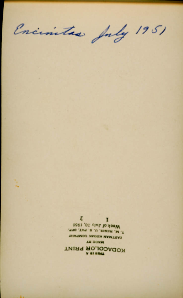 Handwritten label on back says "Encinitas - July 1951" - Date