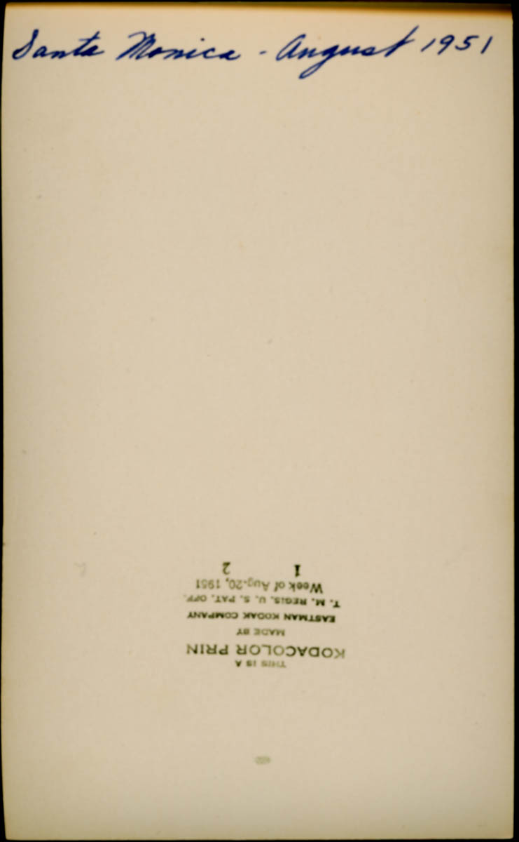 Handwritten label on back says "Santa Monica - August 1951" - Date
