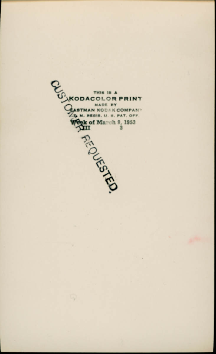 Stamped label on back says "Week of March 9, 1953" - Date