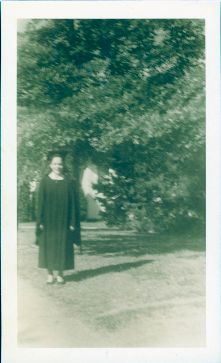 - Snapshot of a young woman in a graduation gown
