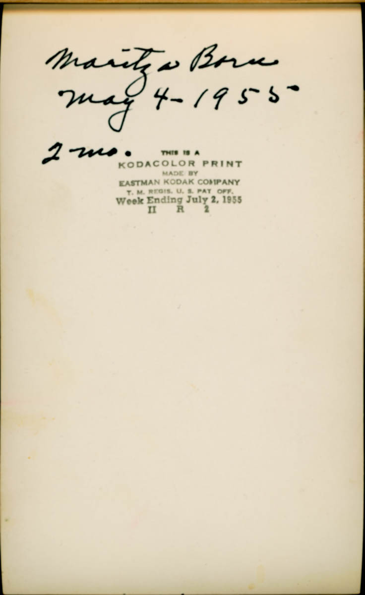 Handwritten label on back says "Maritza, born May 4 - 1955 2 mo." - Date