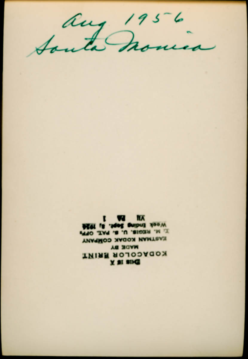 Handwritten text says "Aug 1956 Santa Monica" - Date