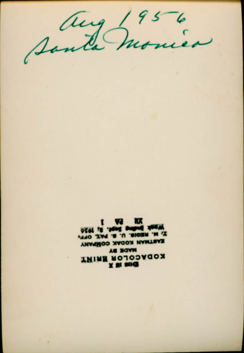 Handwritten text says "Aug 1956 Santa Monica" - Date