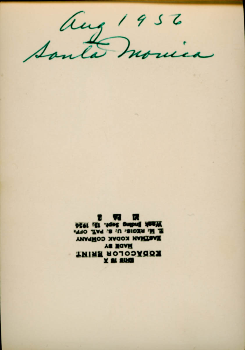 Handwritten text says "Aug 1956 Santa Monica" - Date