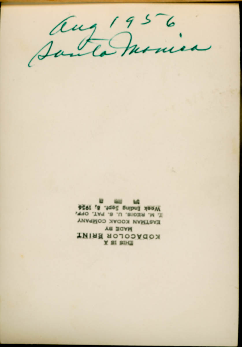 Handwritten text says "Aug 1956 Santa Monica" - Date