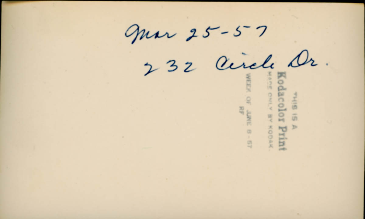 Handwritten label on back says "Mar 25 - 57 232 Circle Dr" - Date