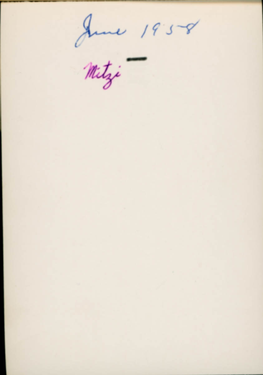 Handwritten label on back says "June 1958 Mitzi" - Date