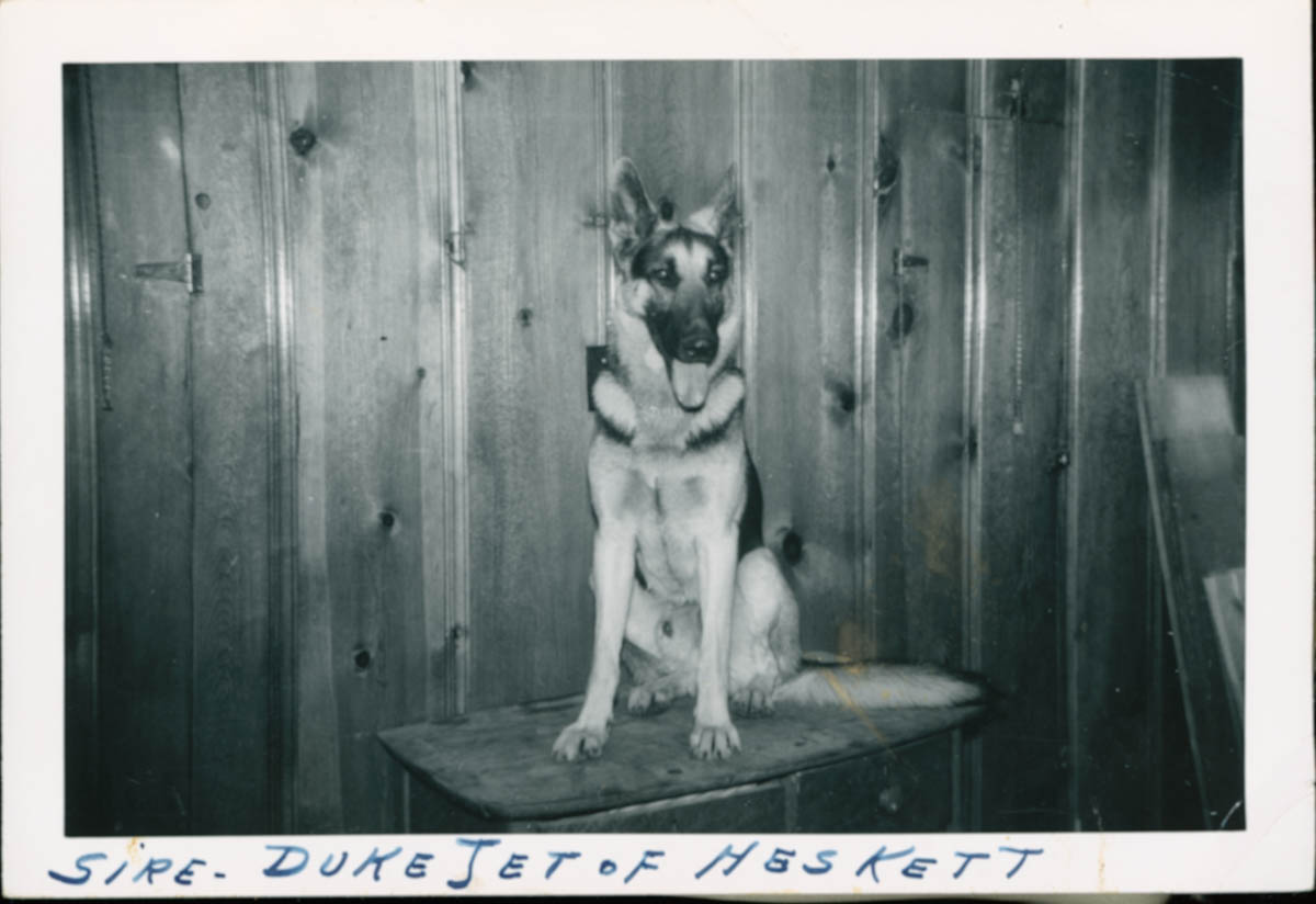 Handwritten label on front says "Sire - Duke Jet of Heskett" - Creator