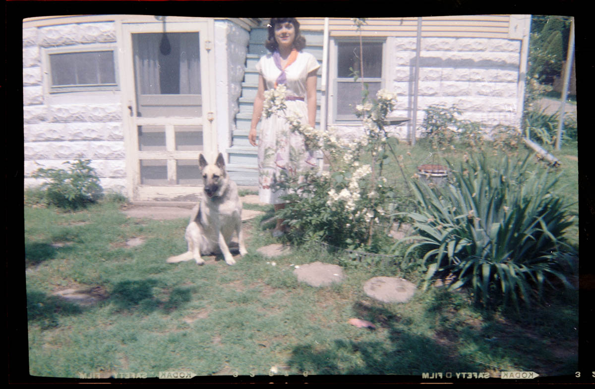 - Snapshot of a woman and dog in a garden
