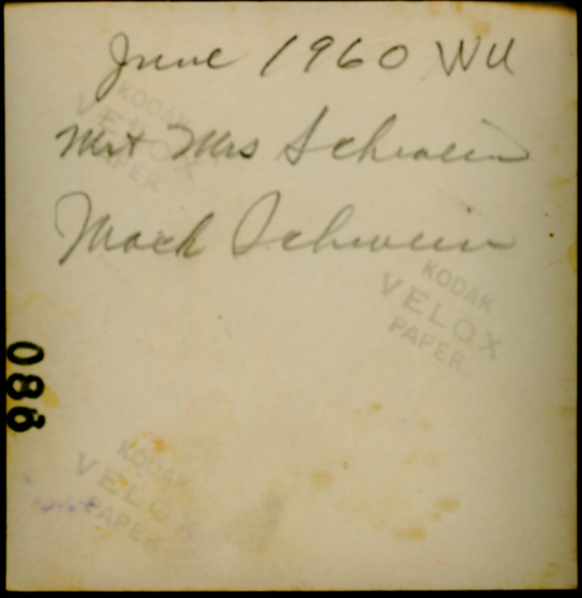 Handwritten label on back says "June 1960 WU Mr & Mrs Schwein, Mack Schwein" - Date