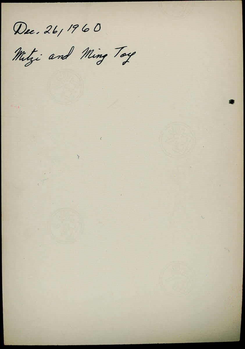 Stamped label on back says "Dec. 26, 1960 Mitzi and Ming Toy" - Date