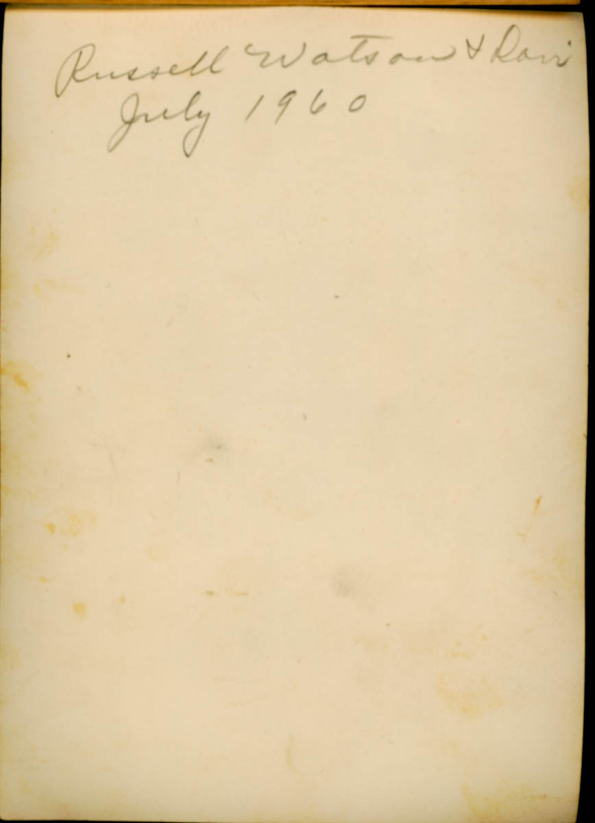 Handwritten label on back says "Russell Watson & Davi July 1960" - Date