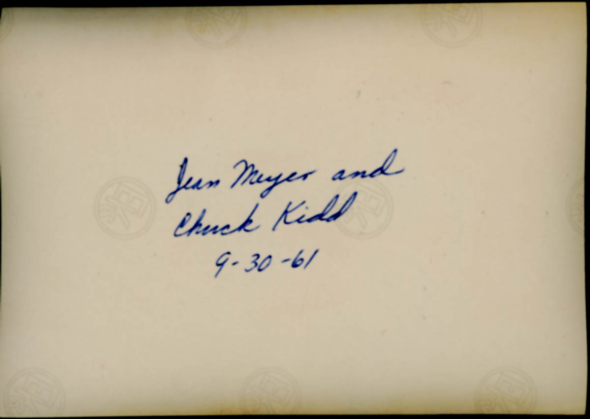 Handwritten label on back says "Jean Meyer and Chuck Kidd 9-30-61" - Date