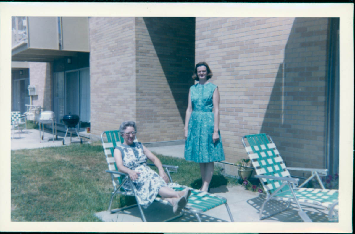 - Snapshot of two women on a patio