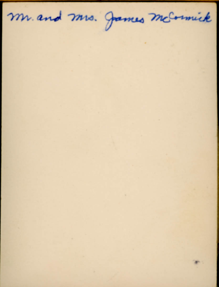Handwritten label on back says "Mr. and Mrs. James McCormick" - Creator