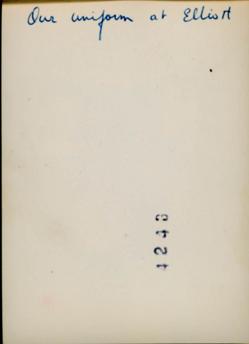 Handwritten label on back says "Our uniform at Elliott" - Creator