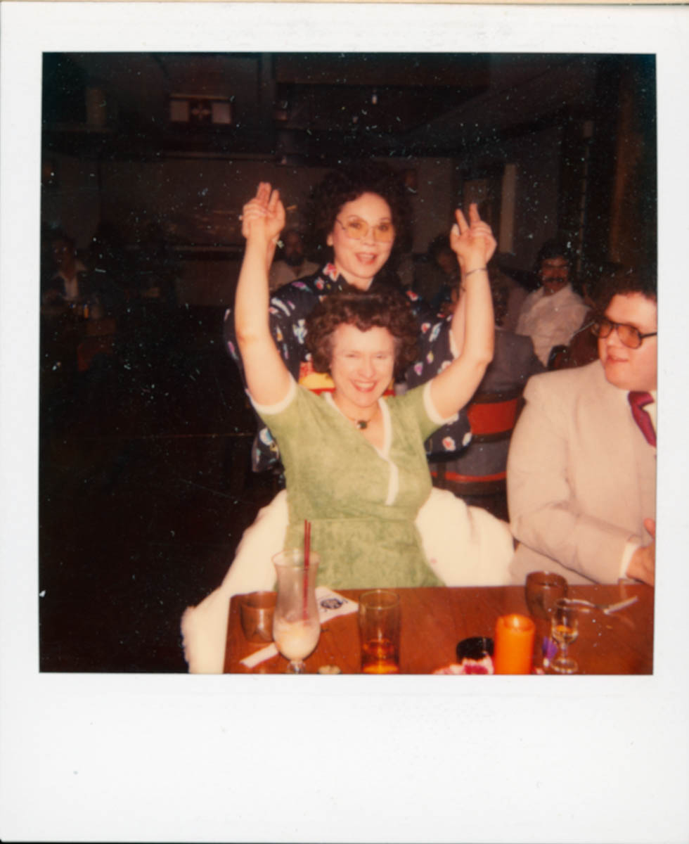 - Snapshot of two women at a restaurant or party
