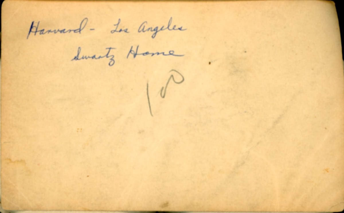 Handwritten label on back says "Harvard - Los Angeles Swartz Home" - Creator