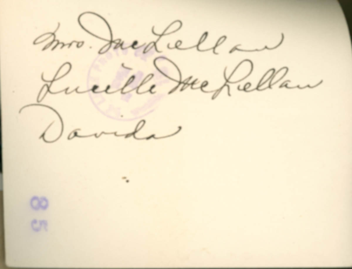 This is a photograph in an album. Handwritten label on front says "June 5 - 1931" and on back says "Mrs. McClellan, Lucille McClellan, Davida" - Date