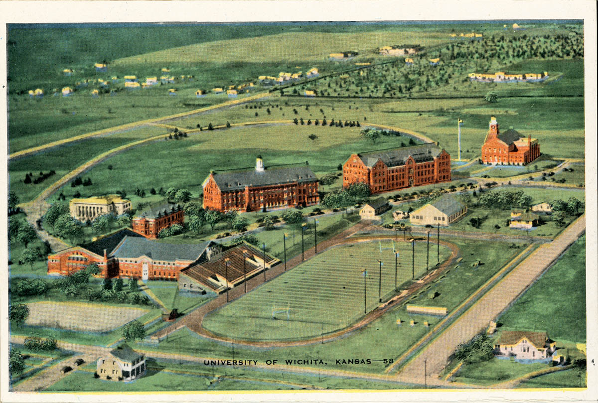 M. S. News Co., Wichita, Kansas, “Wichita Kansas Souvenir Postcard – University of Wichita,” MHGS Digital Collections, accessed April 18, 2026, http://mhgswichita.org/om/items/show/813.
