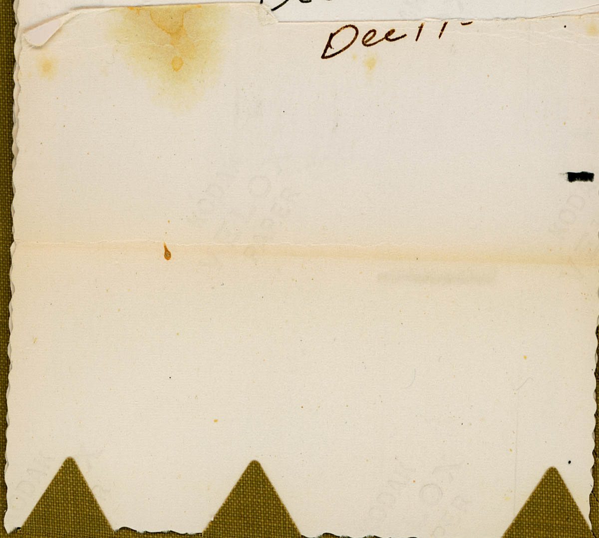 - Snapshot of three people. Handwritten label on back says "Dec. 1952"