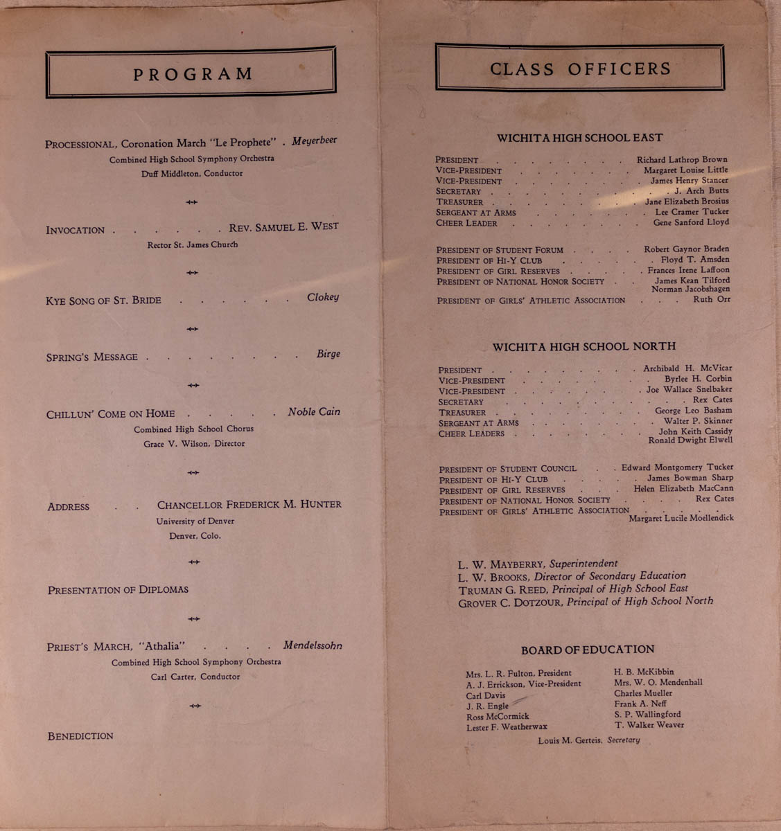 Wichita Public Schools, “Graduation Program for Wichita High Schools East and North,” MHGS Digital Collections, accessed April 16, 2026, https://mhgswichita.org/om/items/show/10307.