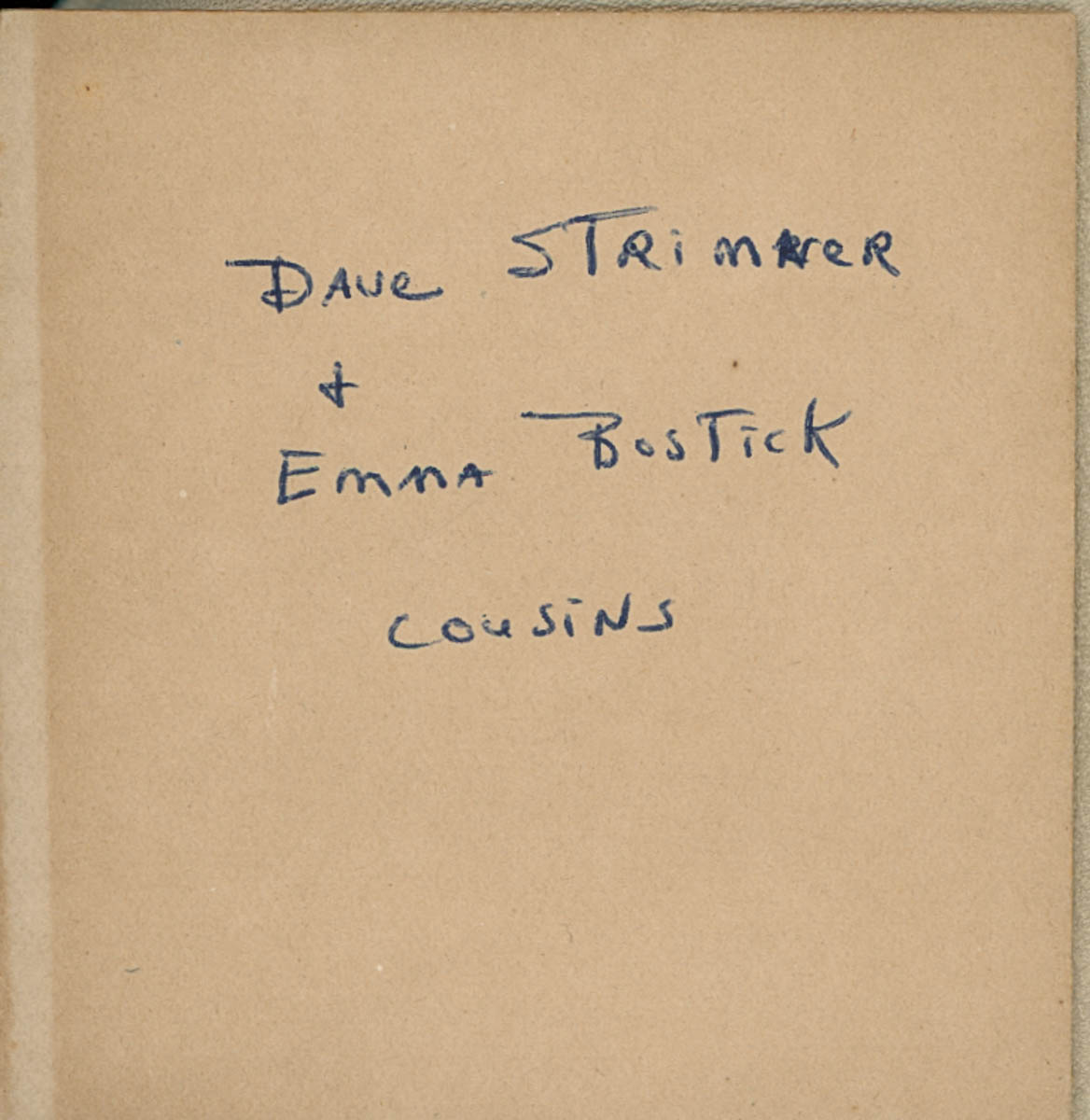 - Portrait of a man and a woman. Handwritten label on back says "Dave Strimner & Emma Bostick Cousins"