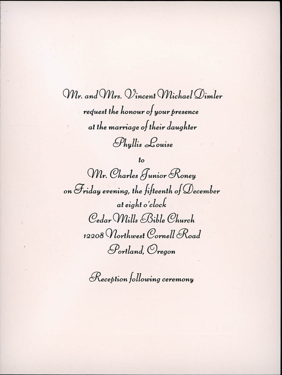 - Wedding Invitation for Phyllis Dimler and Charles Roney