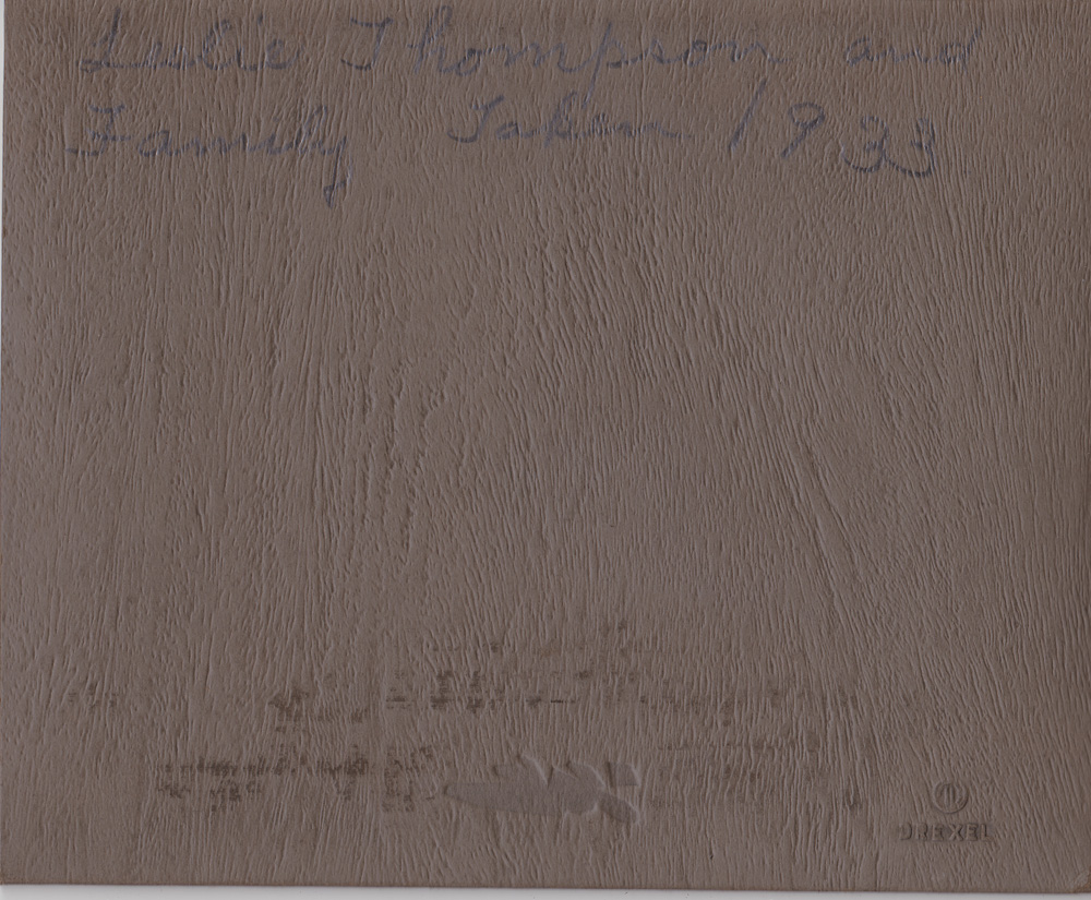 Handwritten label on back says "Leslie Thompson and Family Taken 1933" - Date
