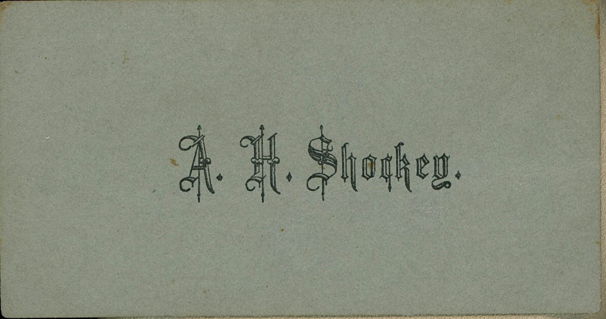 Unknown Artist, “Calling Card for A H Shockey,” MHGS Digital Collections, accessed April 30, 2026, https://mhgswichita.org/om/items/show/10943.