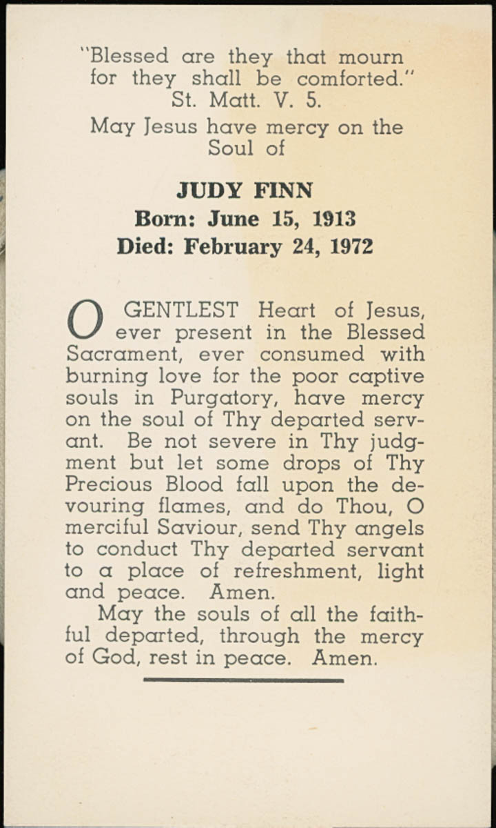 Smith & Kernke Funeral Home, “Funeral Bulletin for Judy Finn,” MHGS Digital Collections, accessed April 16, 2026, https://mhgswichita.org/om/items/show/11412.