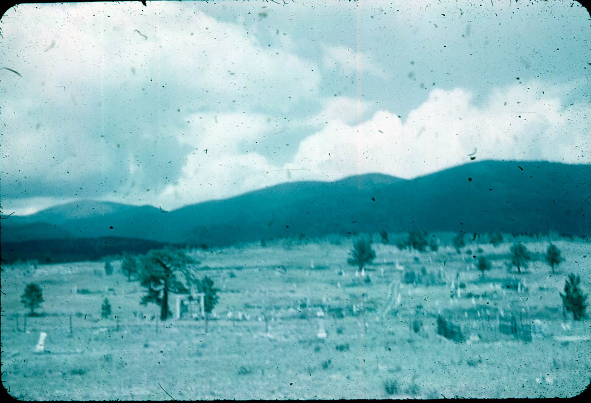 - Snapshot of an historic cemetery in the mountains. Handwritten index entry says "No. 202 - Cemetery - Central City Colo. - July 1954"
