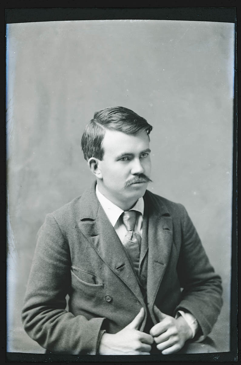 - Studio portrait of a man. Handwritten label on plate says "Mr. C. E. Freeman (?) 12" Found in Box M. Because of our scanning procedure, this image is most likely flipped horizontally.