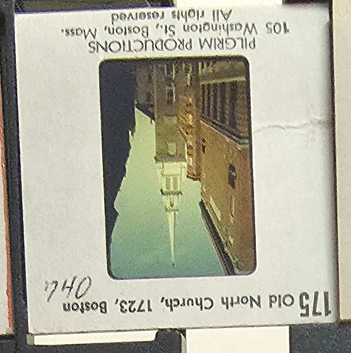 - Snapshot of the interior of an historic church. Handwritten index entry says "No 740 - Old North Ch. Front - Boston, Mass - Pur. Nov 1957"