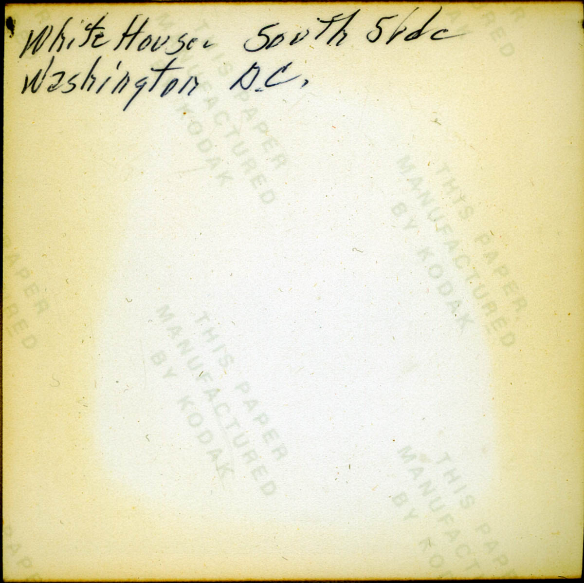 - Snapshot of the White House. Handwritten label on back says "White House - South Side Washington DC"