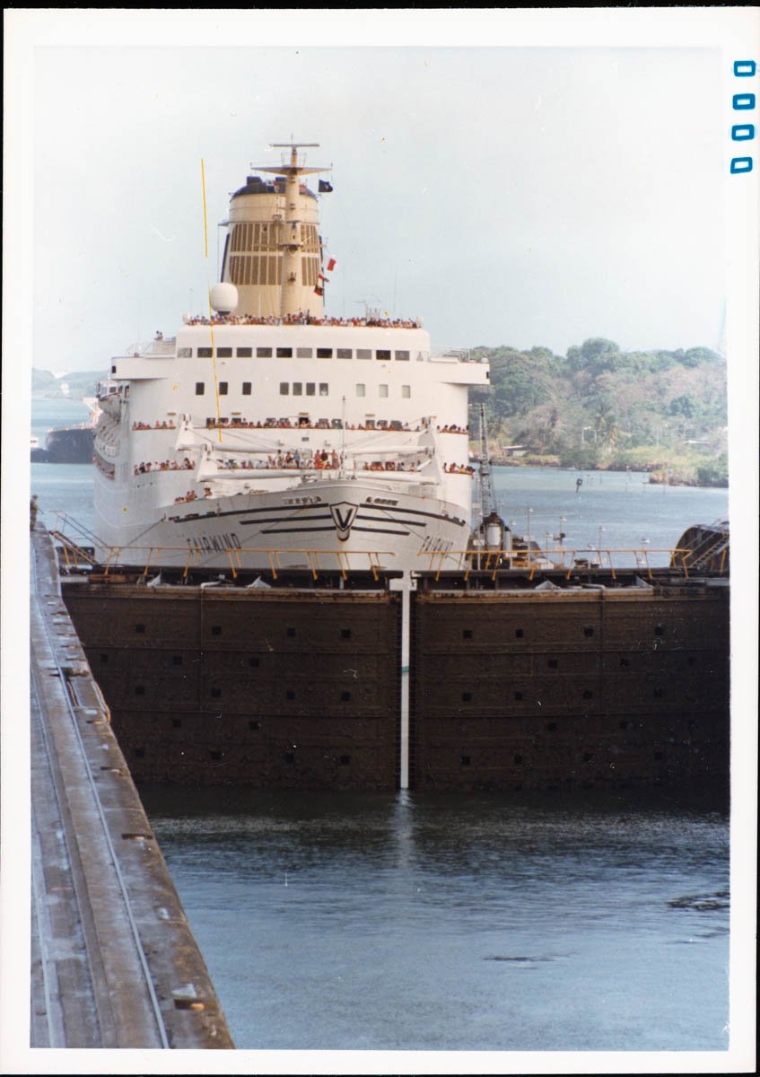 - Snapshot of a cruise ship going through a lock on the Panama Canal.