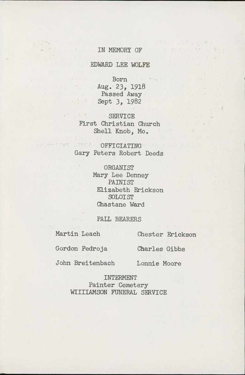 - Funeral Program for Edward Wolfe