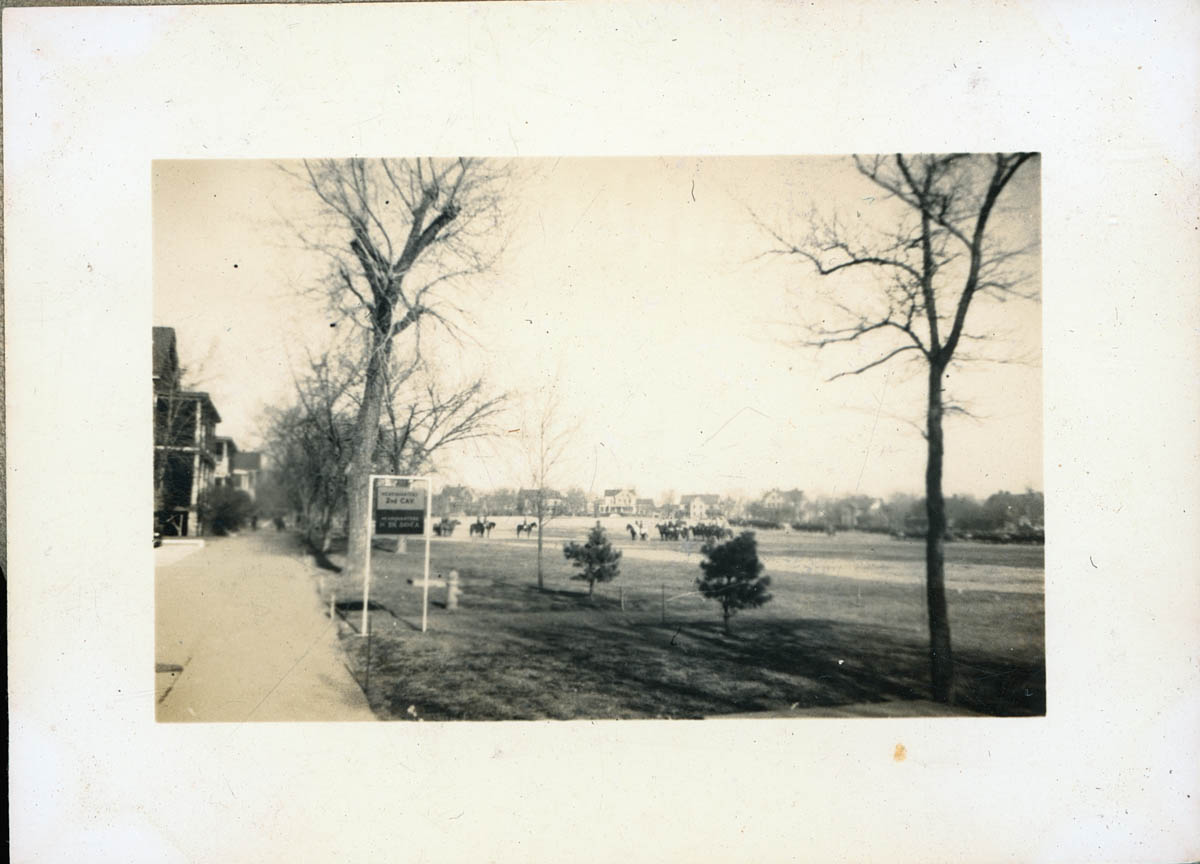 - Snapshot of men in military uniforms riding horses in formation in a large field; in the foreground is a sign that says "Headquarters 2nd Cav. Headquarters 1st BN 84th F. A." This is an item in a scrapbook compiled by Mr and Mrs John D Rensink.