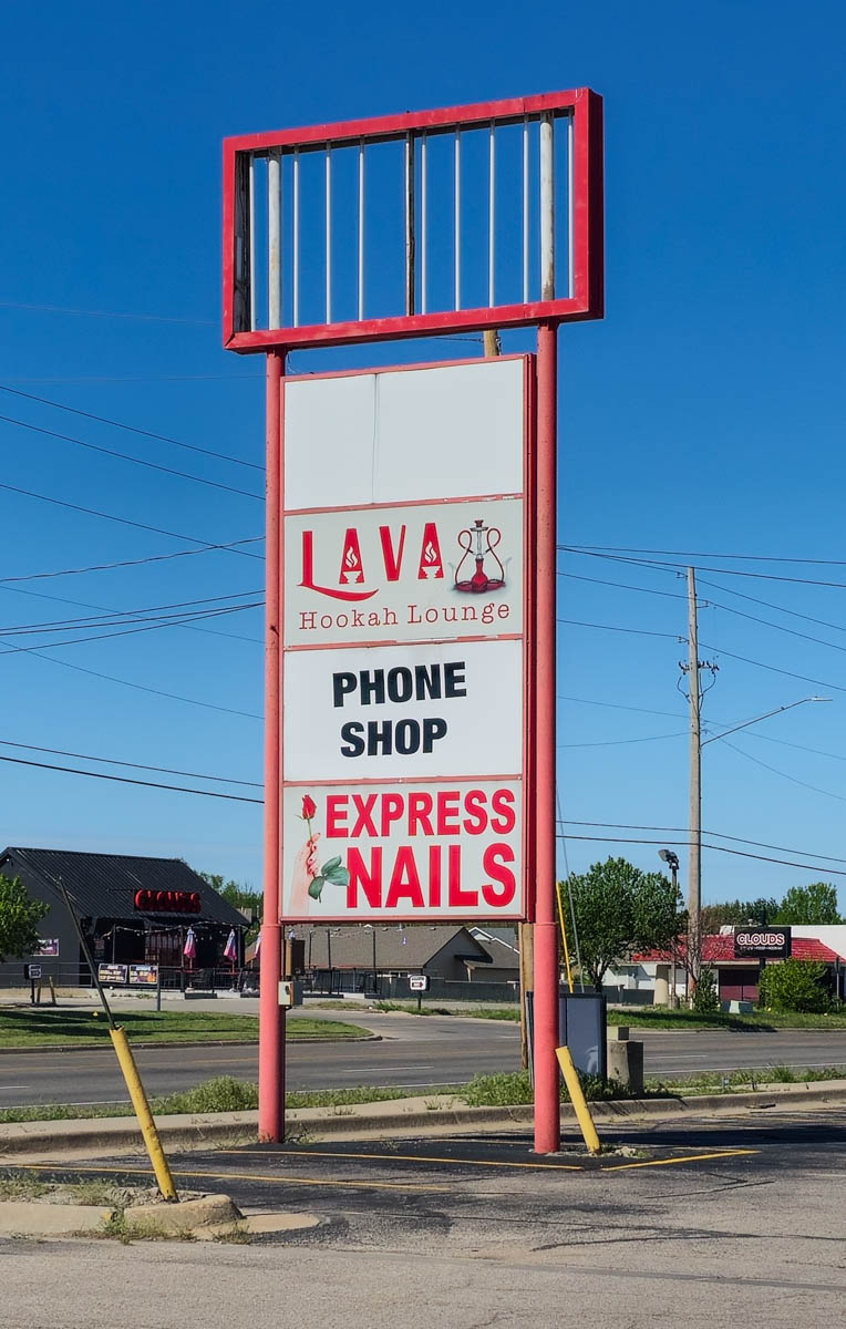 Julia Langel, “Sign for Lava Hookah Lounge, Express Nails and Phone Shop,” MHGS Digital Collections, accessed April 28, 2026, https://mhgswichita.org/om/items/show/12744.