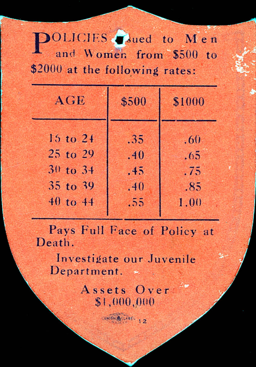 Advertising Tag for Kansas Ancient Order of United Workmen Insurance Policies