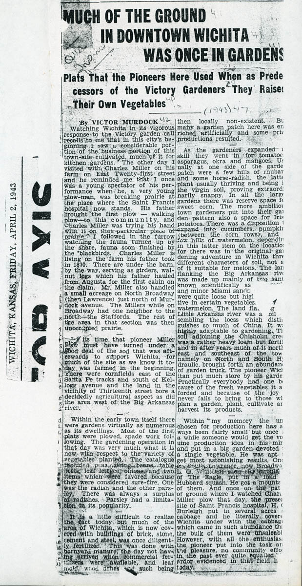 - Newspaper article about the history of vegetable gardens in Wichita.