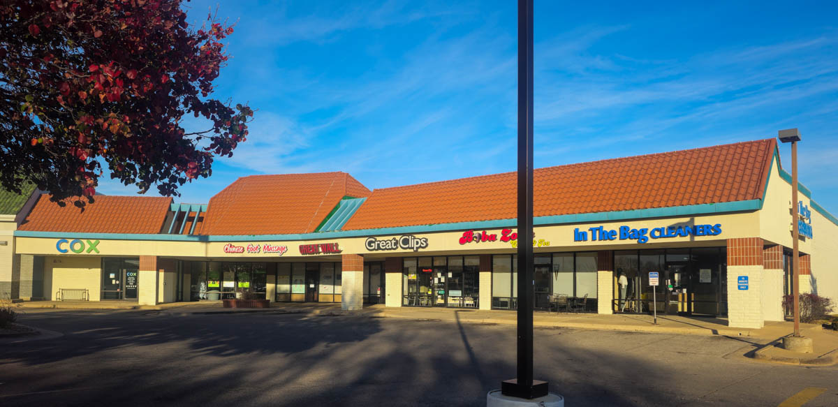 Cox Store, Chinese Foot Massage, Great Wall, Great Clips, Boba Zone II and In the Bag Cleaners