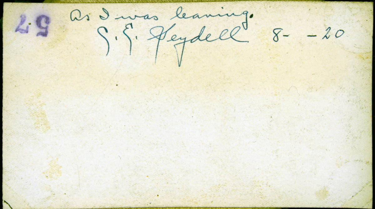 - Snapshot of a billboard advertising Belle Plaine taken from a train. Handwritten label on back says "As I was leaving. C.E. Seydell 8- - 20."