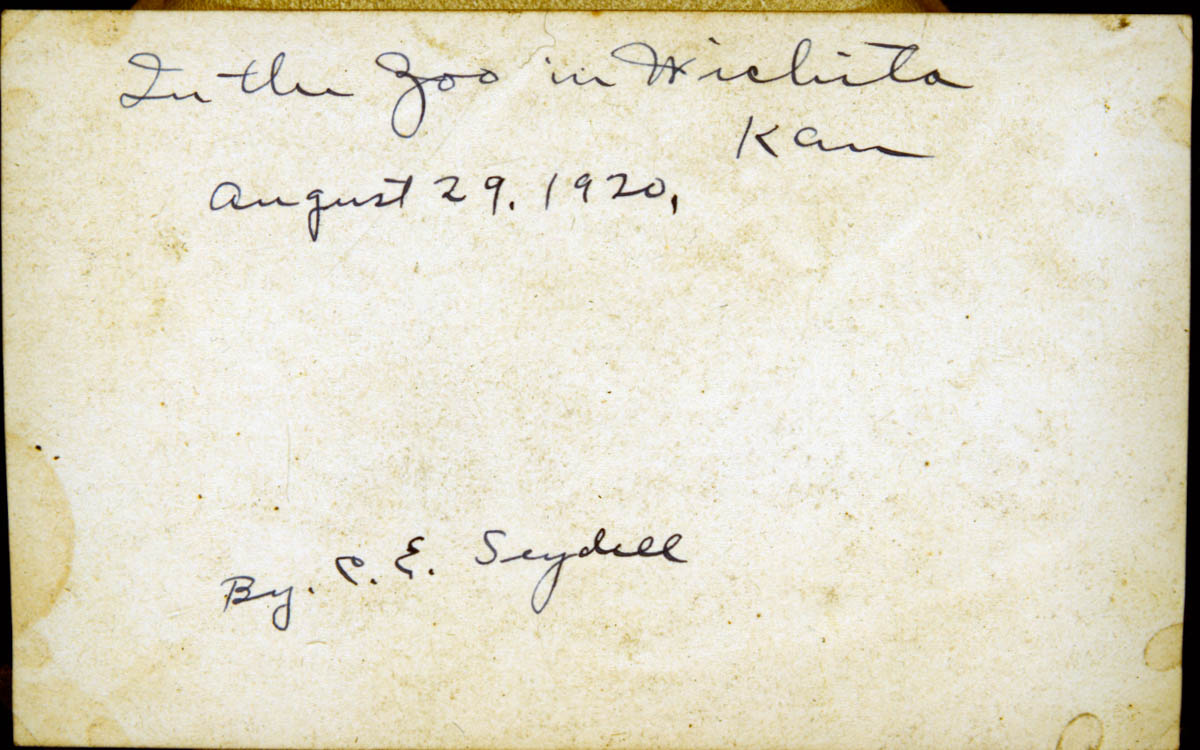 Carl E Seydell, “Alligators at the Riverside Zoo,” MHGS Digital Collections, accessed April 17, 2026, https://mhgswichita.org/om/items/show/16605.