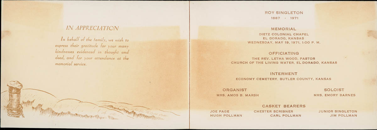 Dietz-Pittman Funeral Home, “Funeral Program for Roy Singleton,” MHGS Digital Collections, accessed April 18, 2026, https://mhgswichita.org/om/items/show/16849.